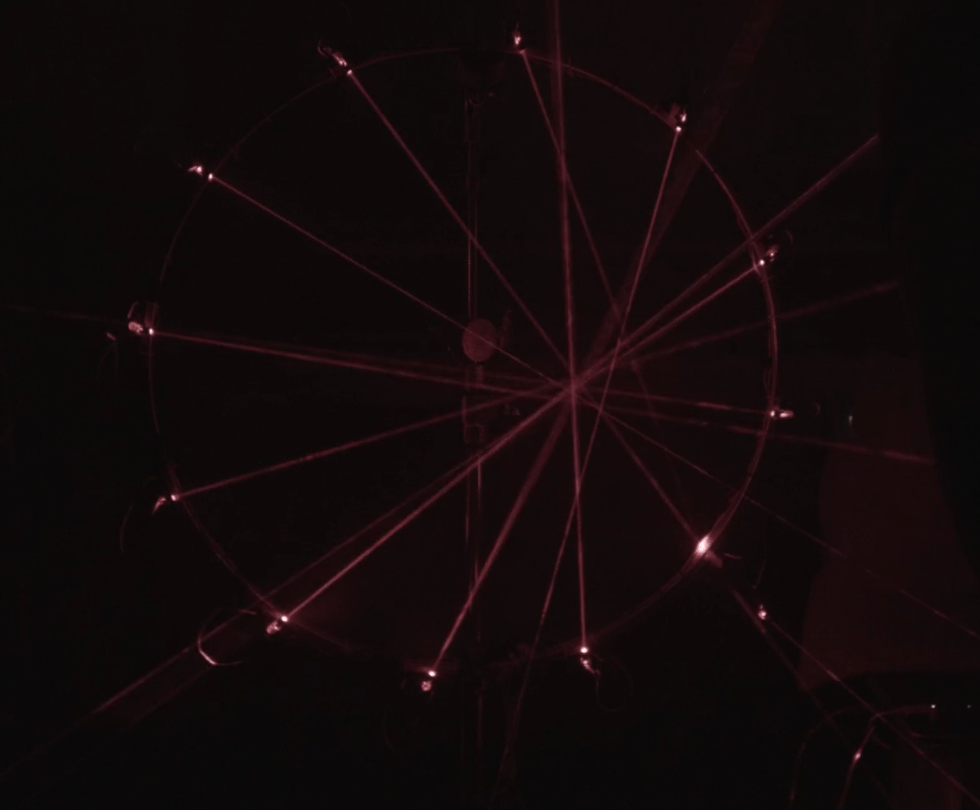 «Lines» (Prototyping: Laser Motion Control with LeapMotion, Processing and Arduino).